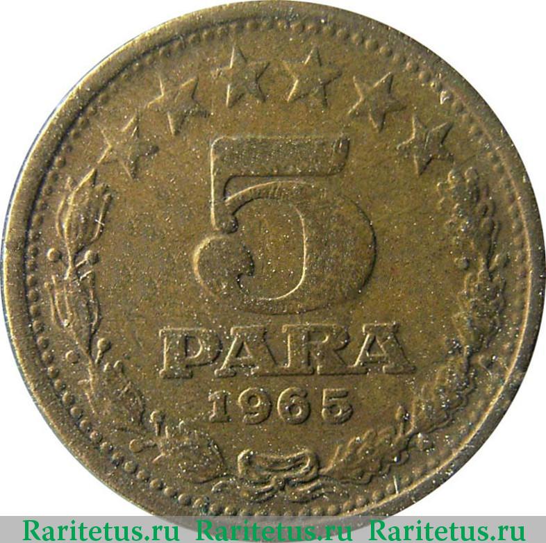 Цена на монету 5 пар (пара, para) 1965 года старый тип на сегодня, 23 октября 2025 года