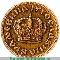 По центру изображена королевская корона Югославии. По окружности надпись на сербском языке «КРАЉЕВИНА ЈУГОСЛАВИЈА» (Королевство Югославия). По окружности канта элементы в виде точек.