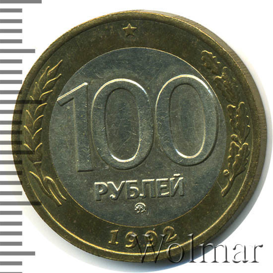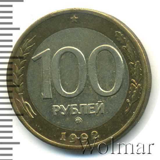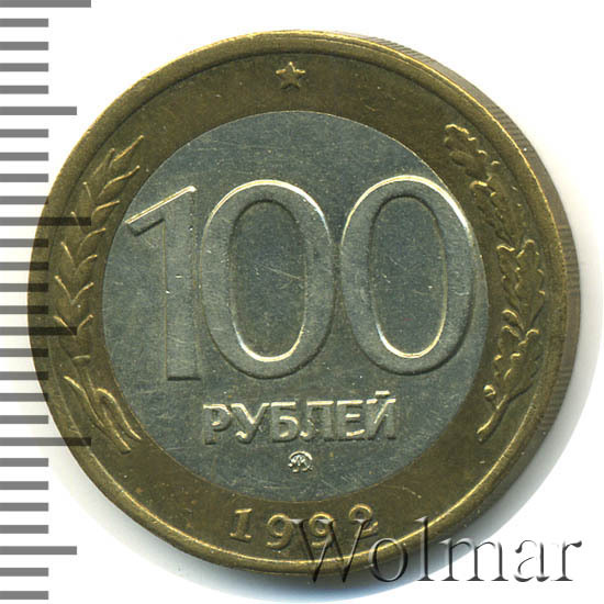 - 100 рублей 1992 года - биметалл против золота