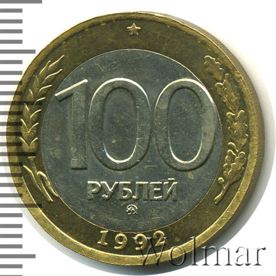 Реверс монеты 100 рублей 1992 года ММД