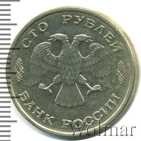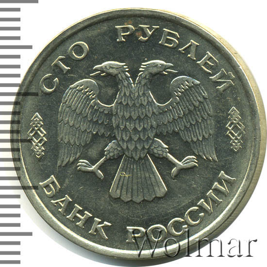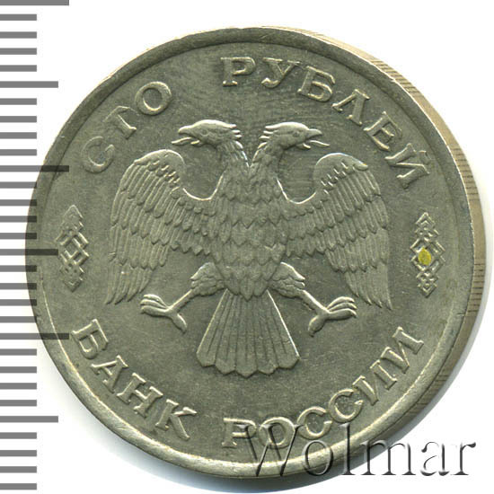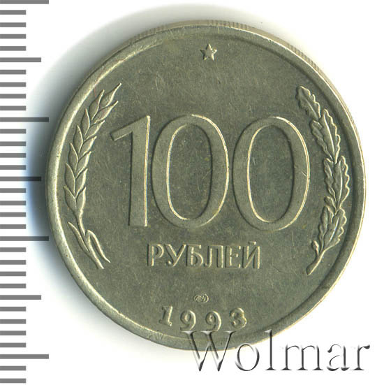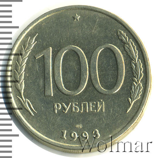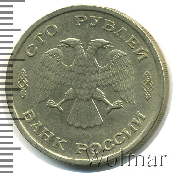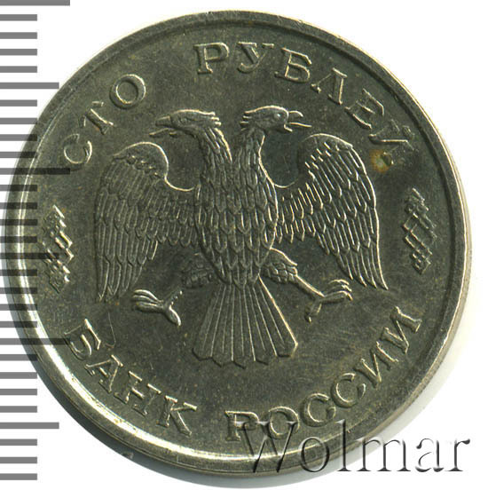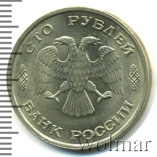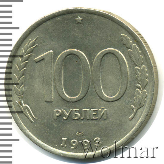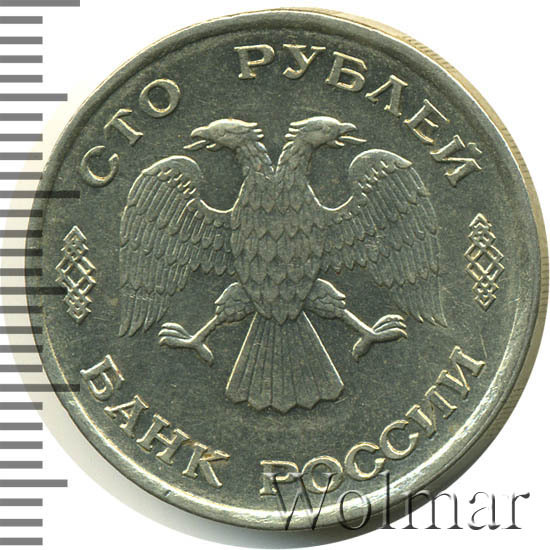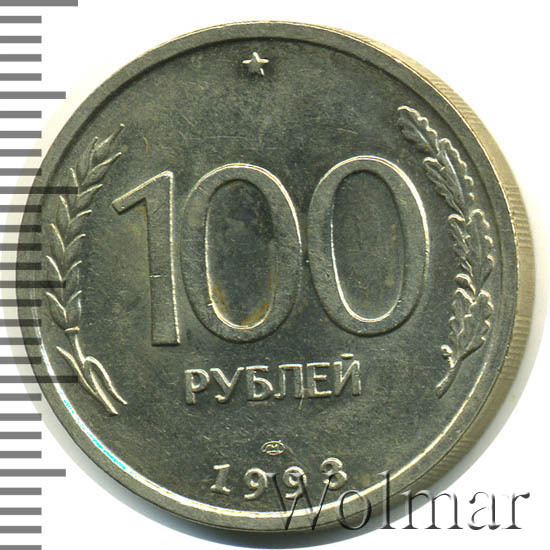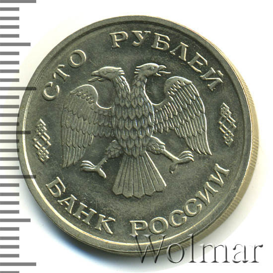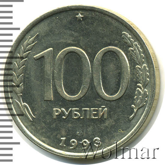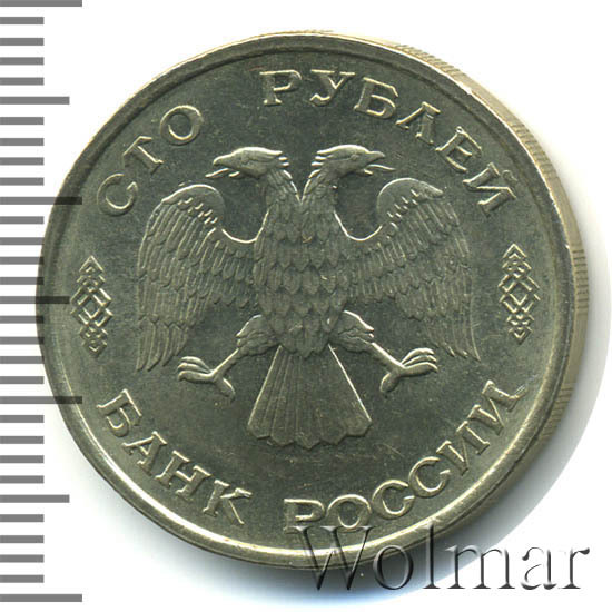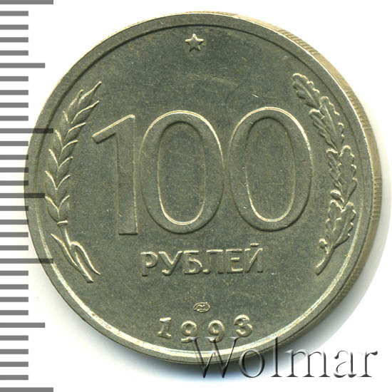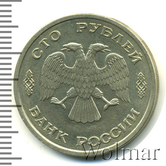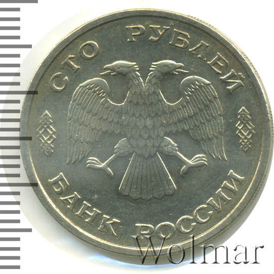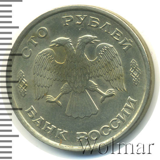 Реверс монеты 100 рублей 1993 года ЛМД