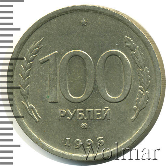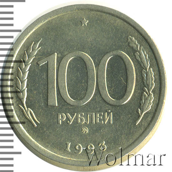 Реверс монеты 100 рублей 1993 года ММД