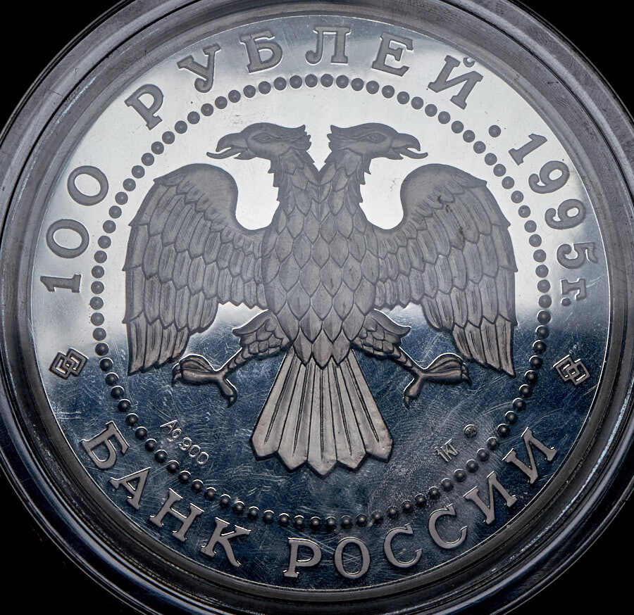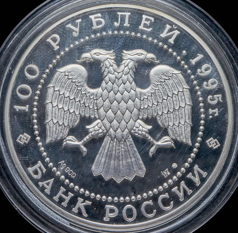 Цена на монету 100 рублей 1995 года ЛМД медведь Proof на сегодня, 25 октября 2025 года