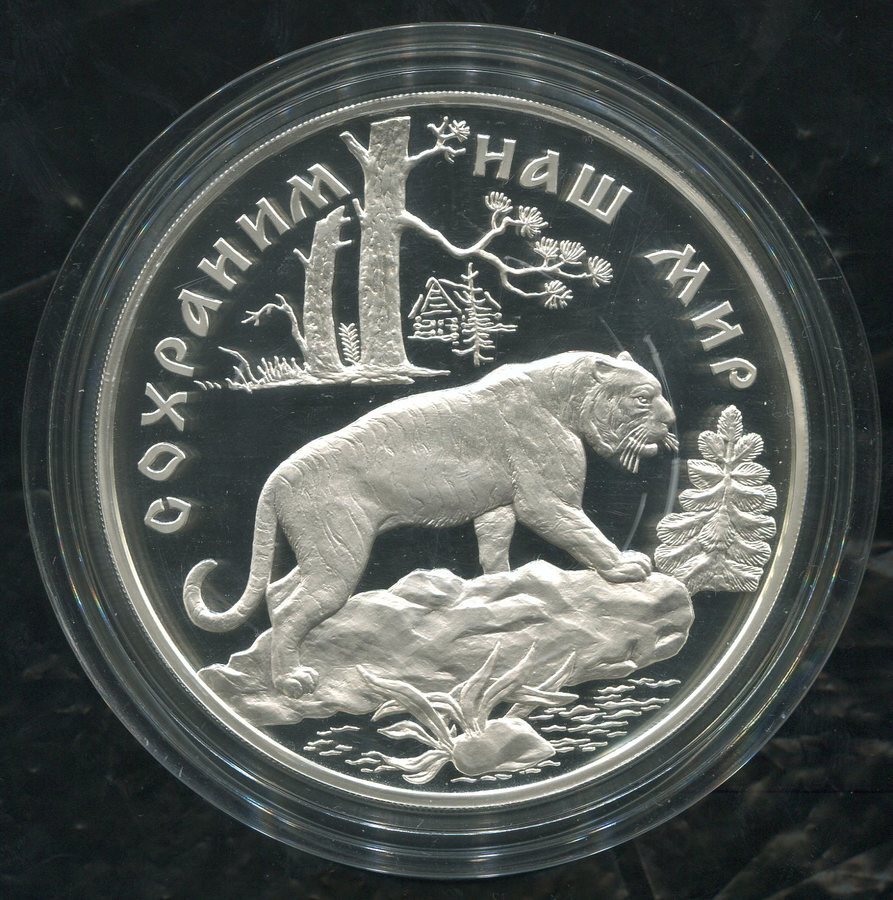 Цена на монету 100 рублей 1996 года ЛМД тигр, серебро Proof на сегодня, 15 февраля 2026 года