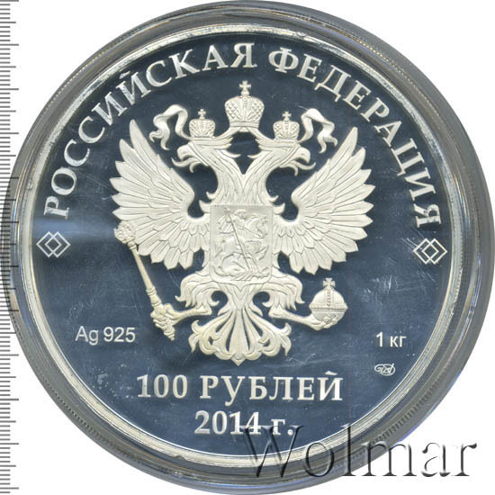Аверс монеты 100 рублей 2014 года СПМД Котел proof