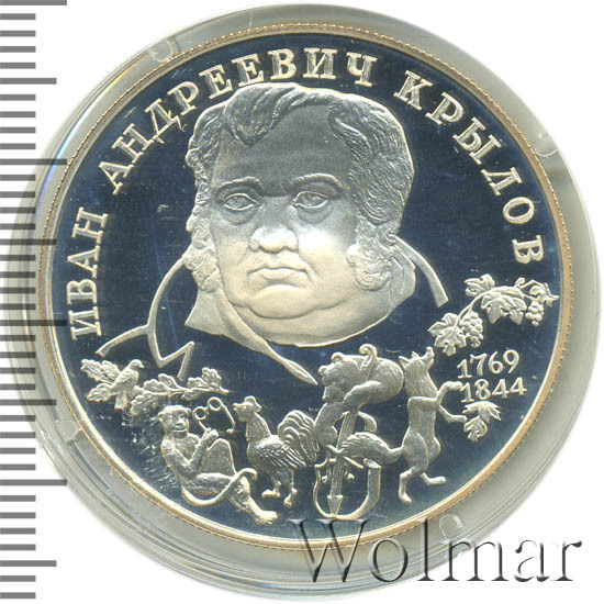2 рубля. 225-летие со дня рождения И. А. Крыловабуквы ЛМД Аукцион: Wolmar Standart Состояние: Proof(UNC) | 26.11.2025 |