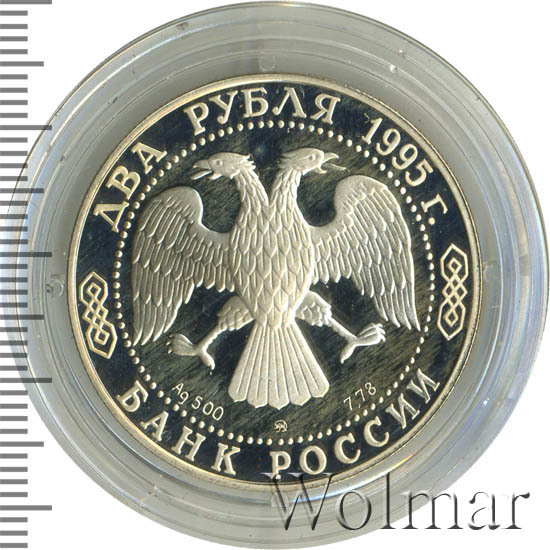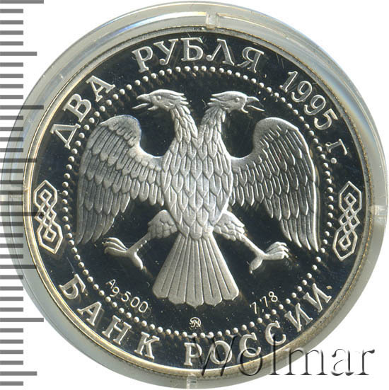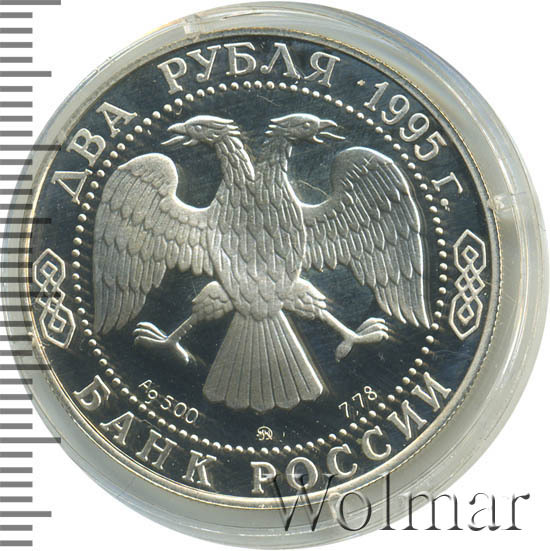 Реверс монеты 2 рубля 1995 года ММД Бунин proof
