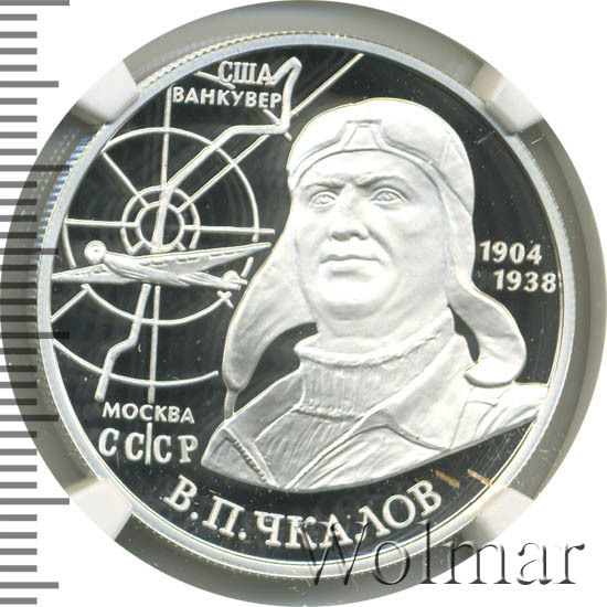 2 рубля. 100-летие со дня рождения В.П. Чкаловабуквы ММД Аукцион: Wolmar VIP Состояние: PF 69 ULTRA CAMEO | 01.05.2025 |