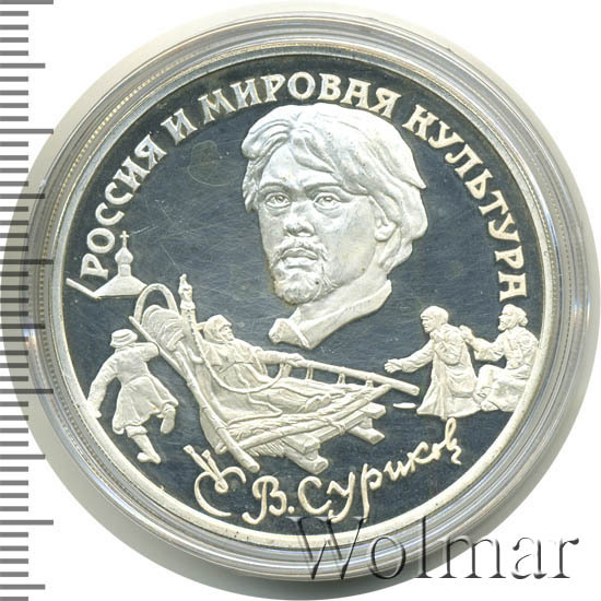 Цена на монету 3 рубля 1994 года ЛМД Суриков Proof на сегодня, 16 октября 2025 года