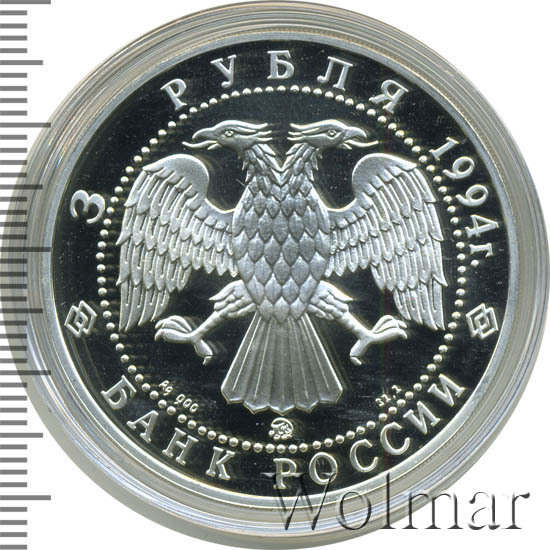 Реверс монеты 3 рубля 1994 года ММД Иванов proof