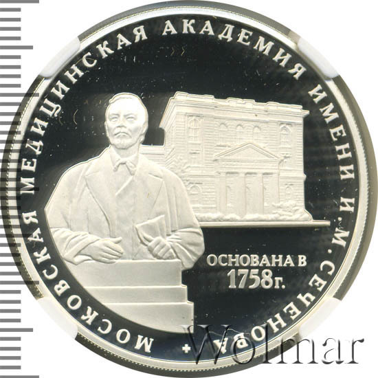 3 рубля. 250 лет Московской медицинской академии имени И.М. Сеченовабуквы ММД Аукцион: Wolmar VIP Состояние: PF 69 ULTRA CAMEO | 10.07.2025 |
