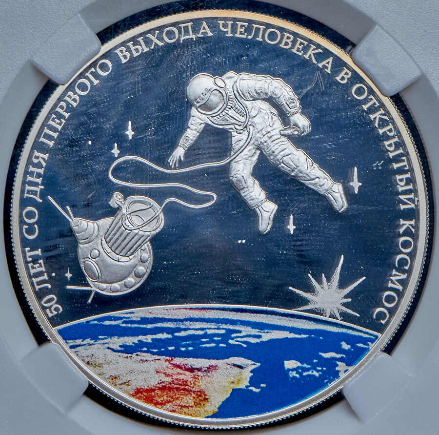 3 рубля. 50-летняя годовщина со дня первого выхода человека в открытый космосбуквы СПМД Аукцион: Wolmar VIP Состояние: PF 69 ULTRA CAMEO | 12.06.2025 |