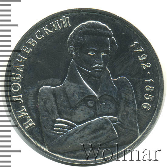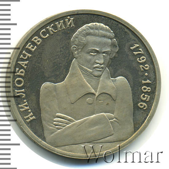 Аверс монеты 1 рубль 1992 года ММД Лобачевский