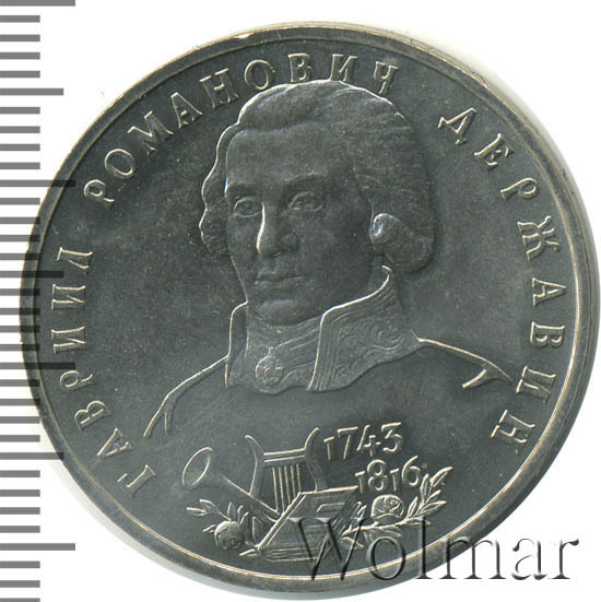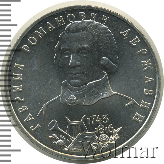 Аверс монеты 1 рубль 1993 года ЛМД Державин