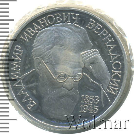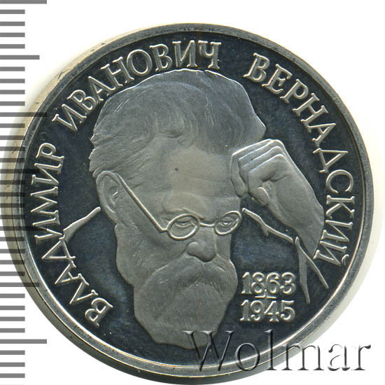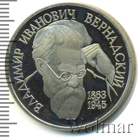 Аверс монеты 1 рубль 1993 года ЛМД Вернадский proof