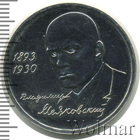 Аверс монеты 1 рубль 1993 года ММД Маяковский