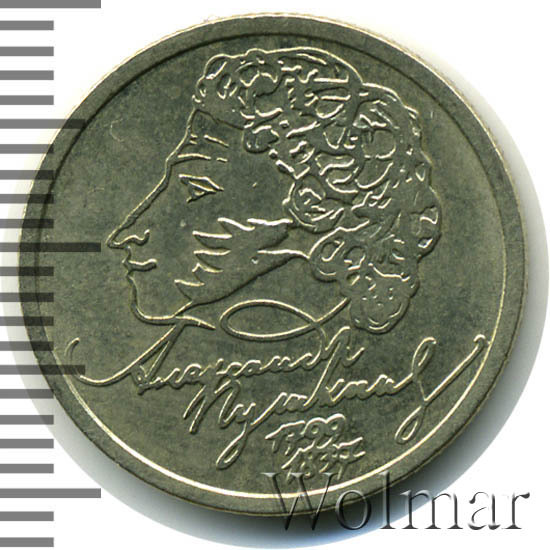 - Стоимость монеты 1 рубль 1999 года с Пушкиным