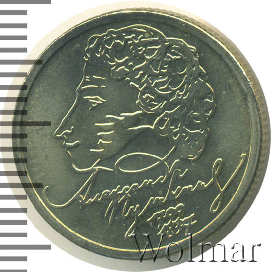 1 рубль. 200 лет со дня рождения А.С. Пушкинабуквы ММД Аукцион: Wolmar Standart Состояние: XF+ | 14.01.2026 |