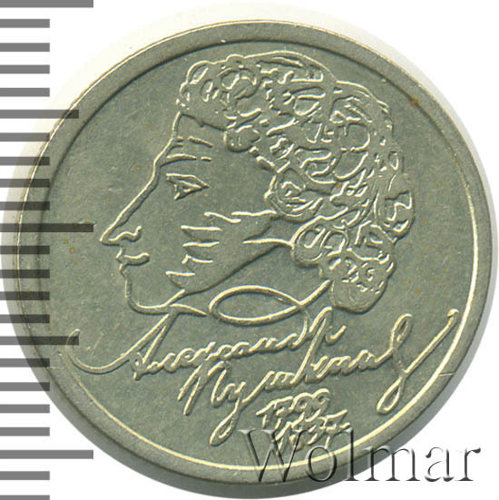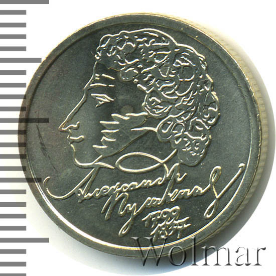 - Стоимость монеты 1 рубль 1999 года с Пушкиным