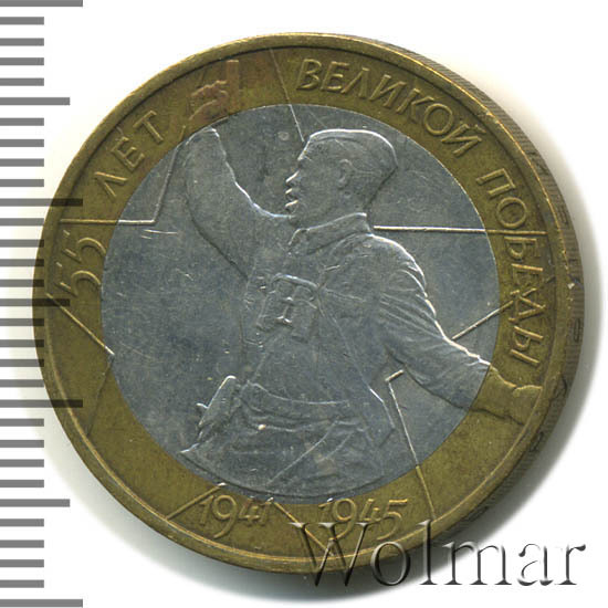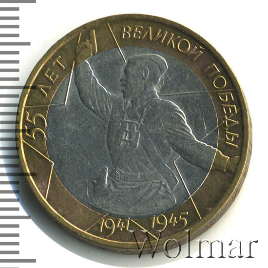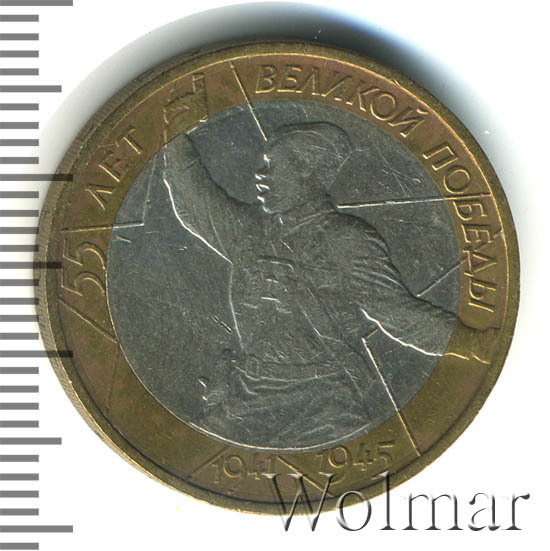 10 рублей. 55-я годовщина Победы в Великой Отечественной войне 1941-1945 ггбуквы ММД Аукцион: Wolmar Standart Состояние: XF+ | 04.03.2026 |
