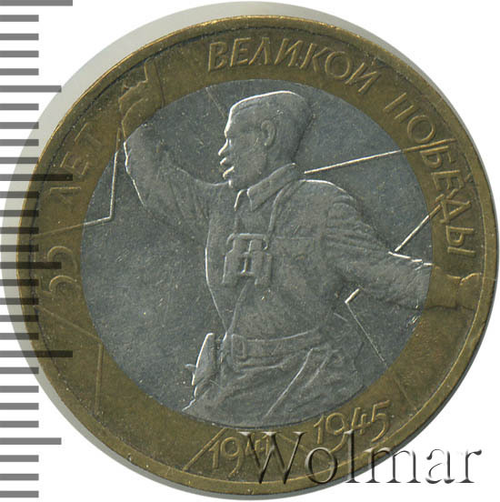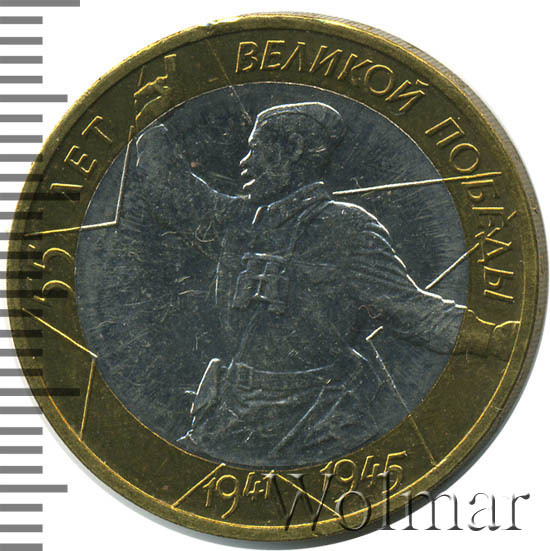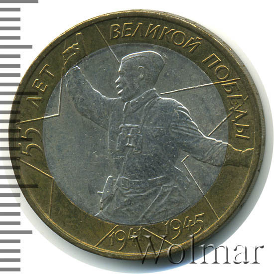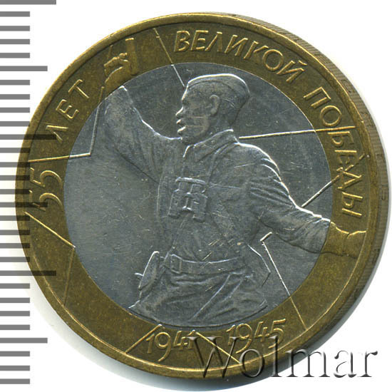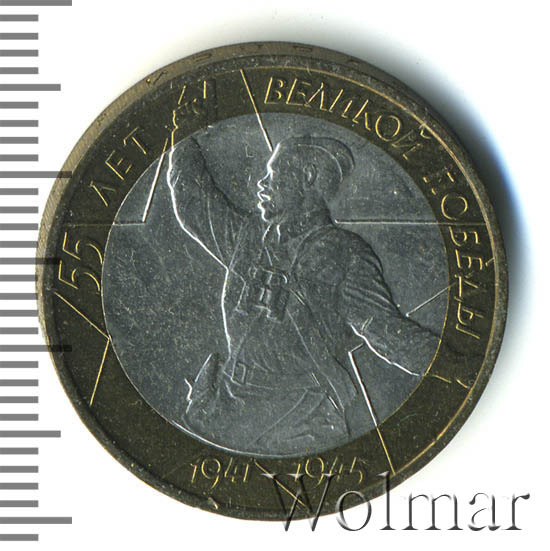 - 10 рублей 55 лет победы в ВОВ "Политрук" ММД и СПМД. История, разновидности, цены.