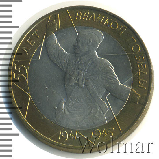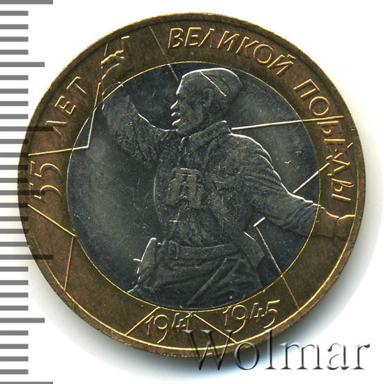 - 10 рублей 55 лет победы в ВОВ "Политрук" ММД и СПМД. История, разновидности, цены.