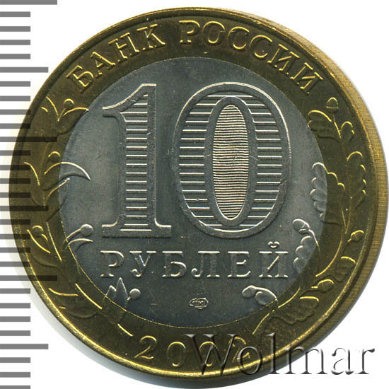 | Гурт | 300 рифлений и надпись "ДЕСЯТЬ РУБЛЕЙ", повторяющаяся дважды, разделенная звездочками. |