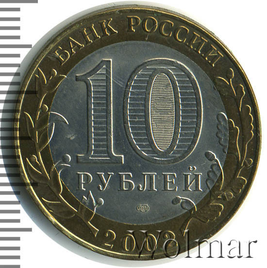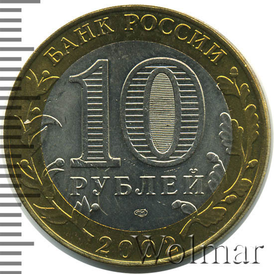 | Гурт | 300 рифлений и надпись "ДЕСЯТЬ РУБЛЕЙ", повторяющаяся дважды, разделенная звездочками. |