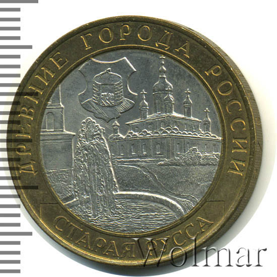 Цена на монету 10 рублей 2002 года СПМД Старая Русса на сегодня, 26 марта 2026 года