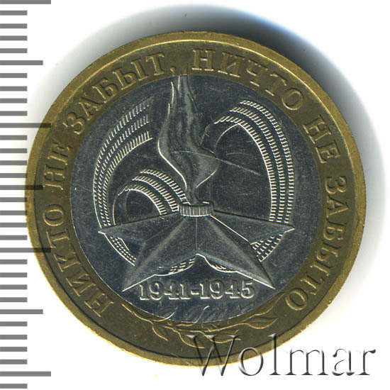 10 рублей. 60-я годовщина Победы в Великой Отечественной войне 1941-1945 гг.буквы ММД Аукцион: Wolmar Standart Состояние: XF | 15.10.2025 |