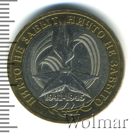 Реверс монеты 10 рублей 2005 года ММД никто не забыт