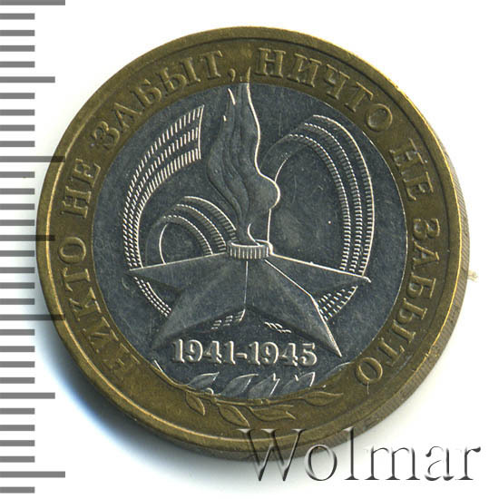 10 рублей. 60-я годовщина Победы в Великой Отечественной войне 1941-1945 гг.буквы ММД Аукцион: Wolmar Standart Состояние: XF | 12.11.2025 |