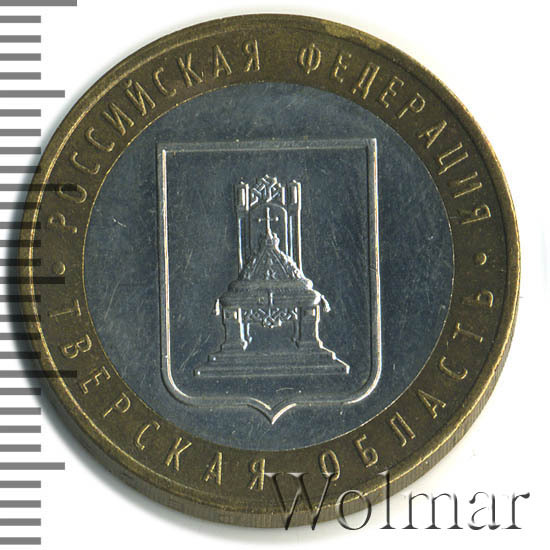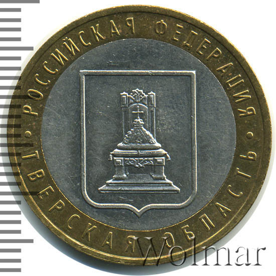 Цена на монету 10 рублей 2005 года ММД Тверская область на сегодня, 18 октября 2025 года