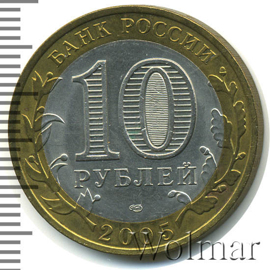 Реверс монеты 10 рублей 2005 года СПМД Боровск