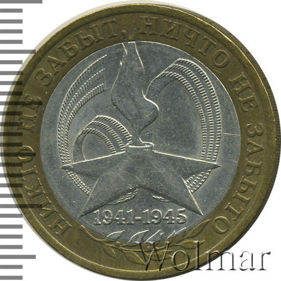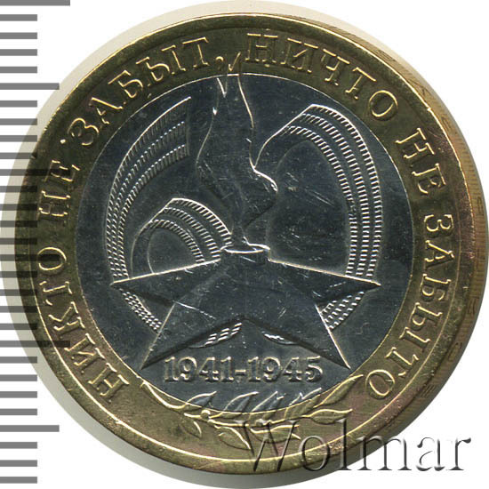 10 рублей. 60-я годовщина Победы в Великой Отечественной войне 1941-1945 гг.буквы СПМД Аукцион: Wolmar Standart Состояние: VF/XF | 25.02.2026 |
