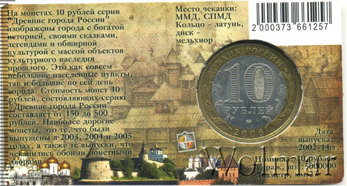 Аверс монеты 10 рублей 2006 года ММД Белгород