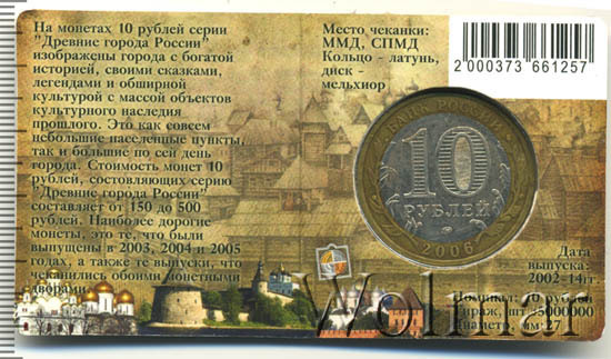 Аверс монеты 10 рублей 2006 года ММД Каргополь
