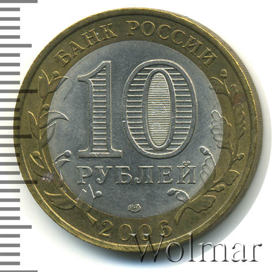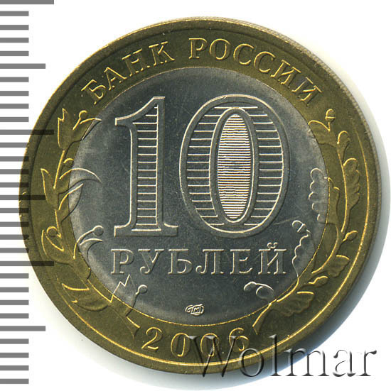 Реверс монеты 10 рублей 2006 года СПМД Торжок