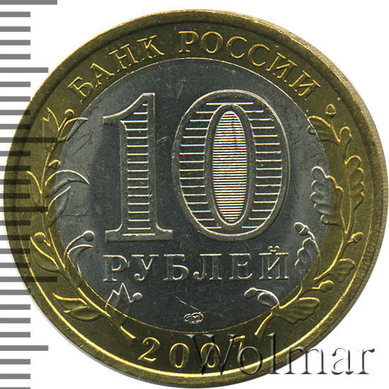 | Гурт | 300 рифлений и надпись«ДЕСЯТЬ РУБЛЕЙ», повторяющаяся дважды, разделённая звёздочками. |