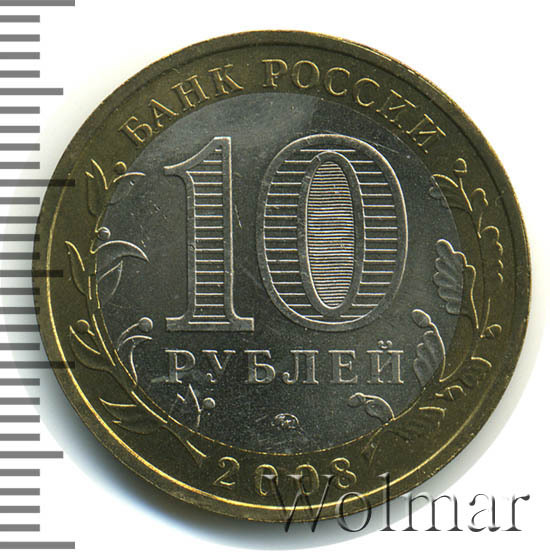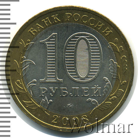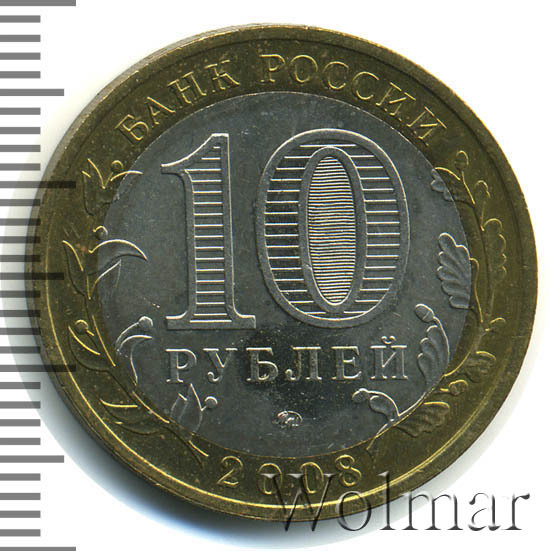 Цена на монету 10 рублей 2008 года ММД Астраханская область на сегодня, 8 марта 2026 года