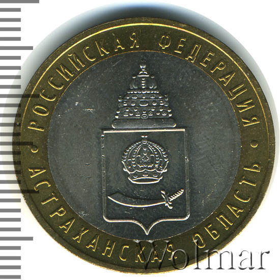 Аверс монеты 10 рублей 2008 года ММД Астраханская область