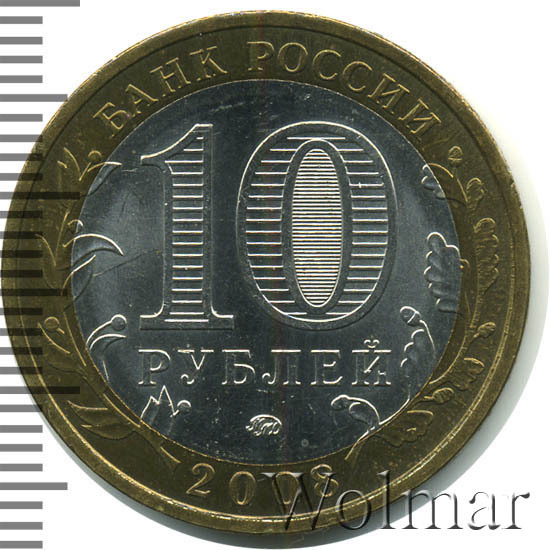 Аверс монеты 10 рублей 2008 года ММД Приозерск