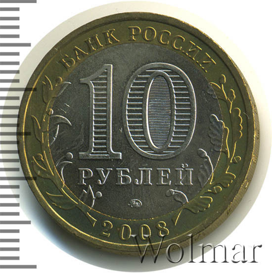 Реверс монеты 10 рублей 2008 года ММД Владимир