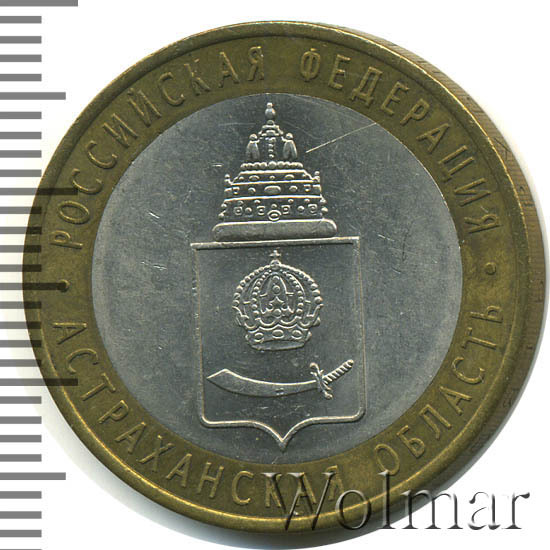 Цена на монету 10 рублей 2008 года СПМД Астраханская область на сегодня, 23 октября 2025 года