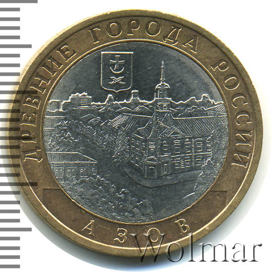 Аверс монеты 10 рублей 2008 года СПМД Азов
