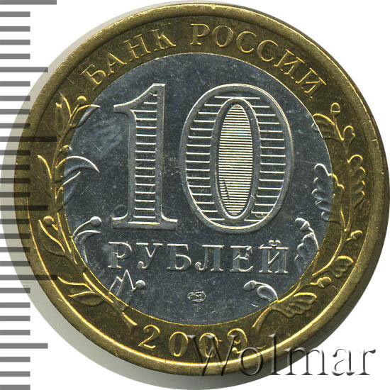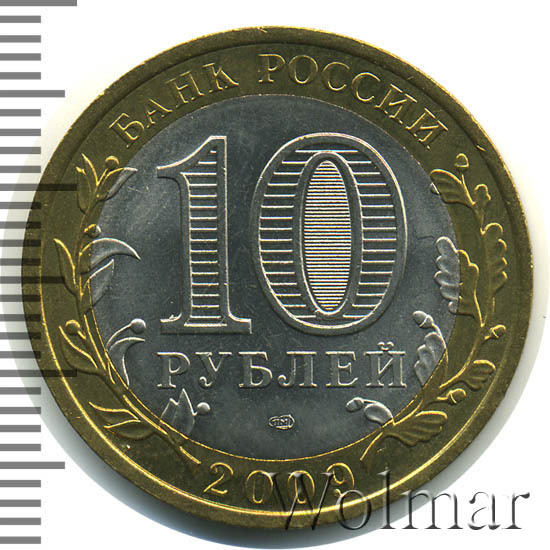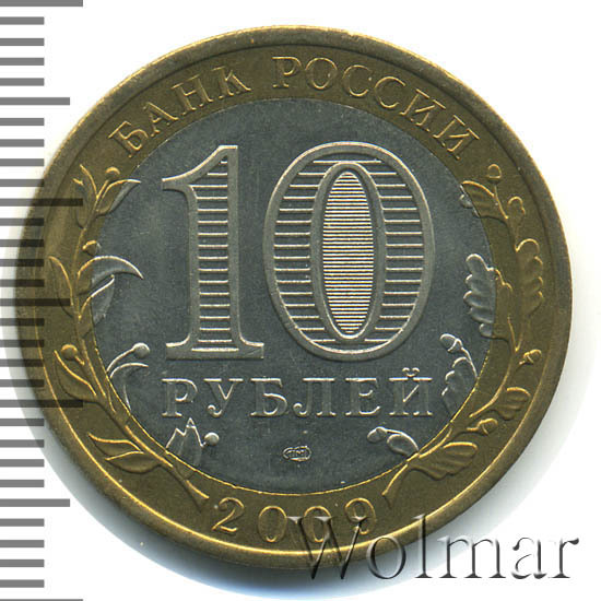 Реверс монеты 10 рублей 2009 года СПМД Выборг