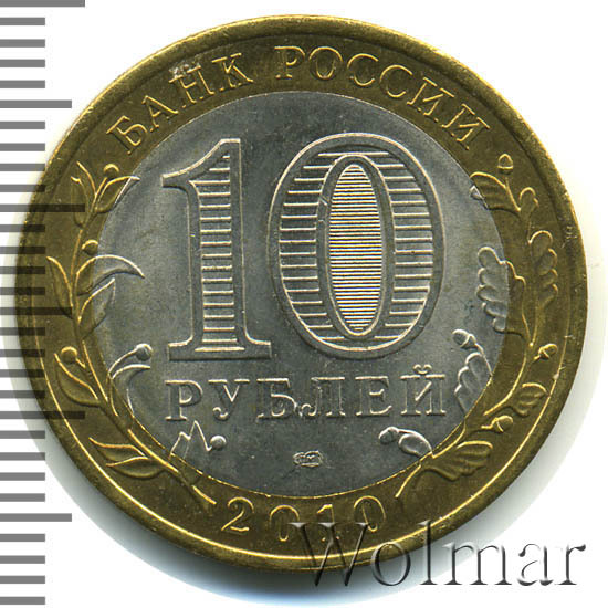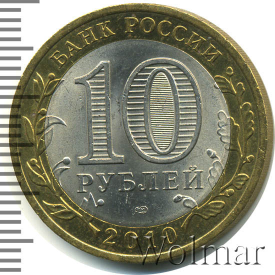 Реверс монеты 10 рублей 2010 года СПМД Брянск