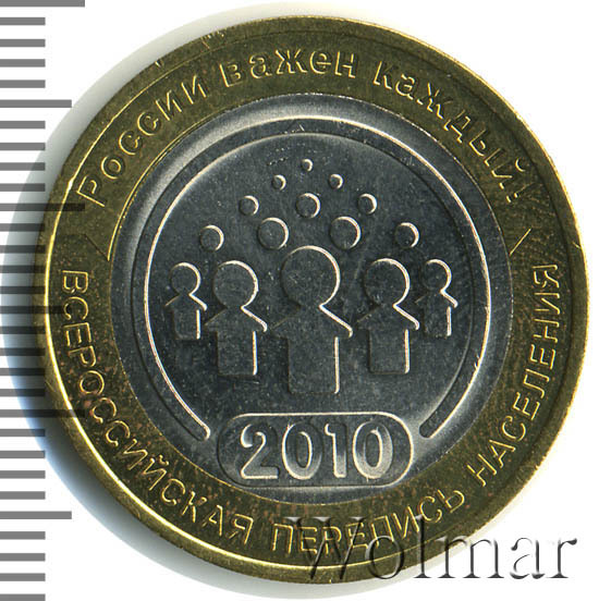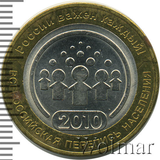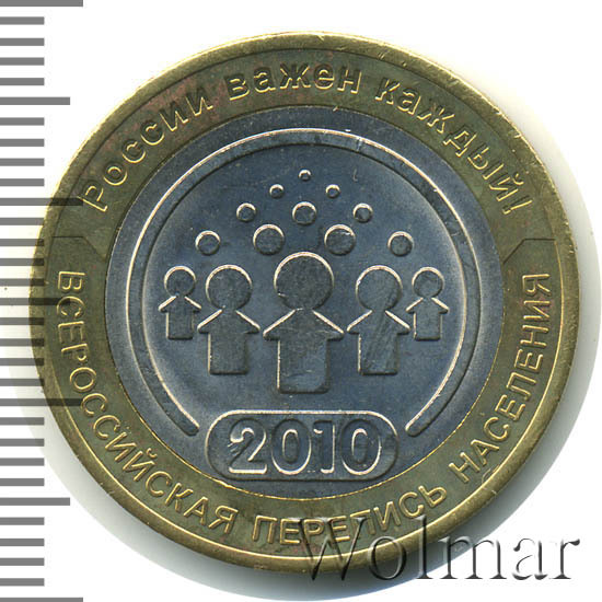 Аверс монеты 10 рублей 2010 года СПМД перепись