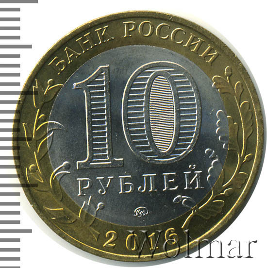 Аверс монеты 10 рублей 2016 года ММД Великие Луки