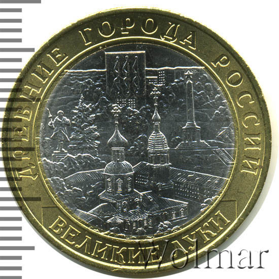 Цена на монету 10 рублей 2016 года ММД Великие Луки на сегодня, 8 декабря 2025 года
